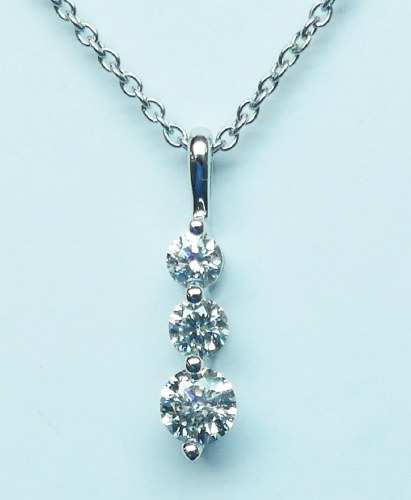 Diamond pendant graduated journey design 14kt white gold 1.06 carat total weight 3 laboratory (CVD) diamonds model 039-30760-1